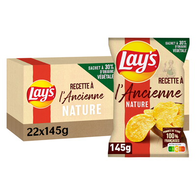Cependant certains décisionnaires considèrent que sous la forme de Chips la pomme de terre nest plus apte à monter sur la table dune personnalité importante. Pépites de saveurs naturelles Lays Chips de sel naturel Poids total 120 grammes. Fécule de manioc huile de tournesol chair de crabe sucre sel ail acidifiant acide citrique poudre à lever.